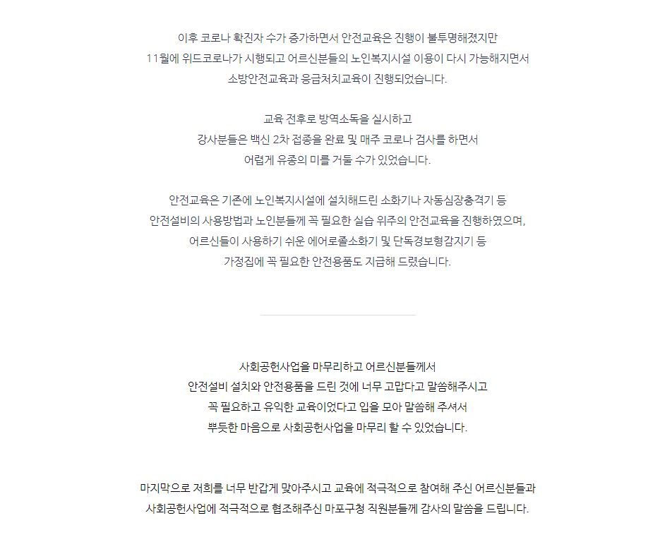 사회공헌사업 노인복지시설 안전교육